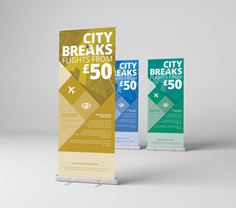 Get your client noticed at their next trade show with a roller banner. Printed on durable, scratch-resistant 220mic Banner PVC, our standard roller banners come pre-fitted into their stand with swing-out feet for stability. These are a great choice for banners that will be used a handful of times.
